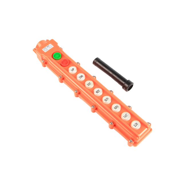 COB61A,COB62A,COB63A,COB64A series Crane Control Station, which with protection extra buttons Start and Stop, for control the crane to different direction, such as UP, DOWN, EAST,WEST,NORTH,SOUTH,LEFT,RIGHT,SLOW,FAST etc.
