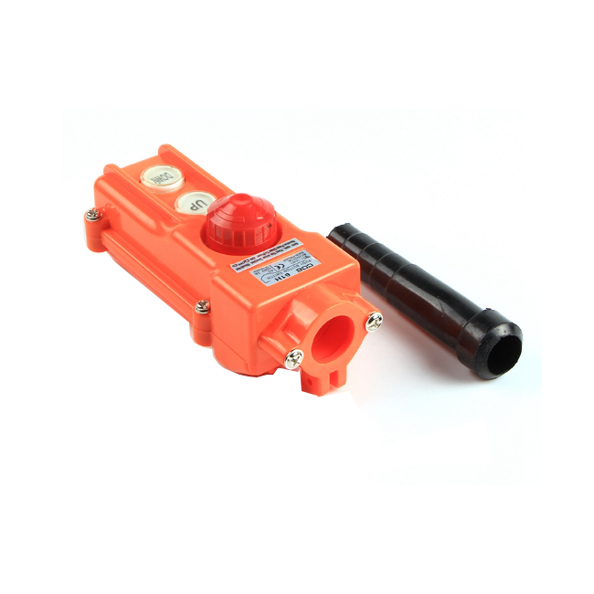 COB-H series Rain Proof Crane Control Station is a newly developed products,which with Emergency Stop protection, with the beautiful , strong and light, reliable struction, advanced and big contact capacity; mechanical interlocking , and if necessary, it can achieve interock circuit to assure the more safety and reliable using . The products matched cable jacket and waterproof rubber sealing strip, have a good (IP65 level) performance of dust and rain. So it most suitable for the remote controll in outdoor, rainy and snowy, dusty and damp environment, such as electric hoist, open conveyor belt, building line etc.